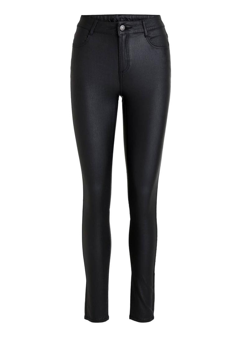 Calças Vila. modelo Vicommit. cor preta. Encerado. mid rise. 4 bolsos. Skinny. zipper Bon. Muito elástica. O modelo veste tamanho S.