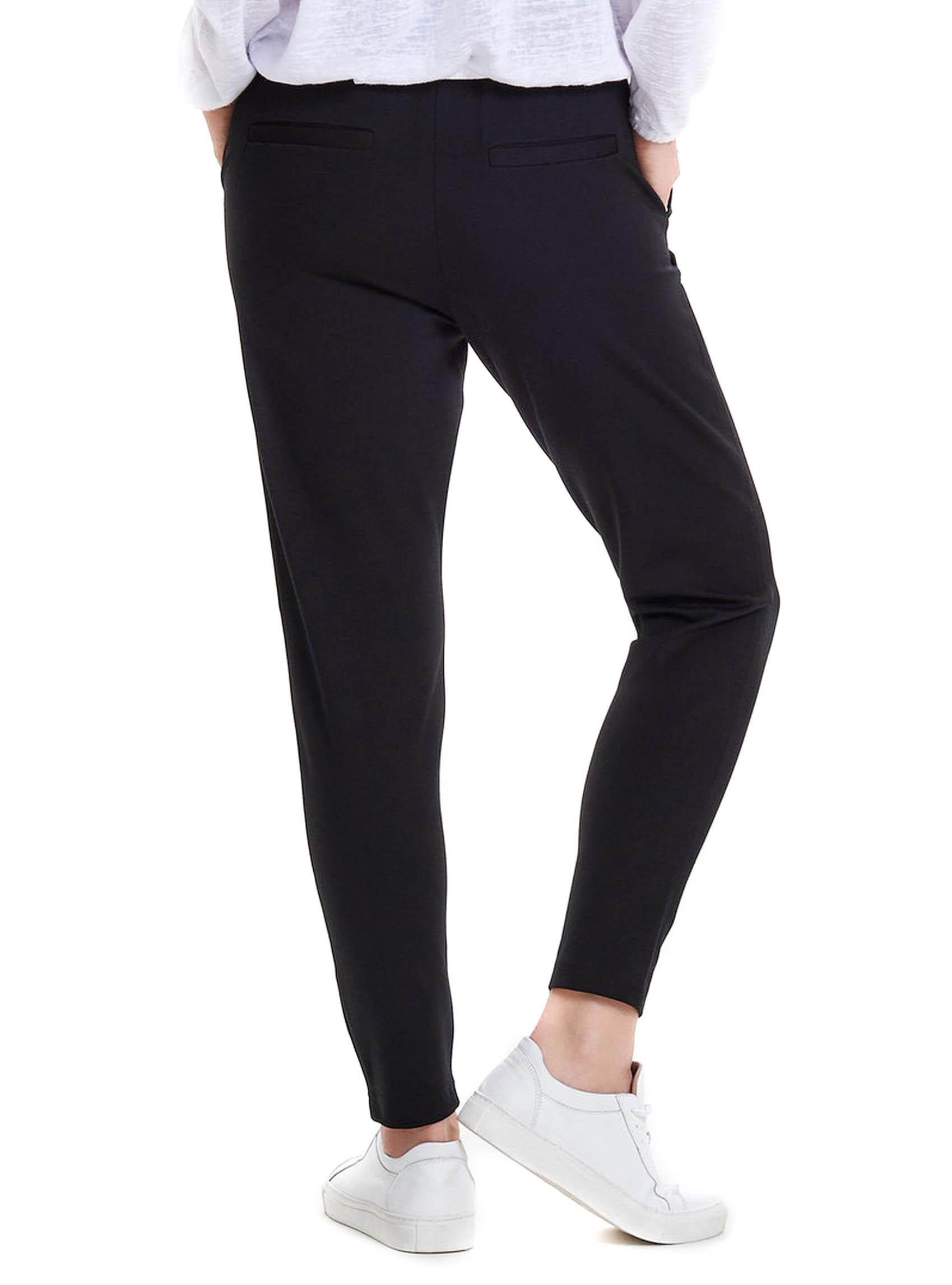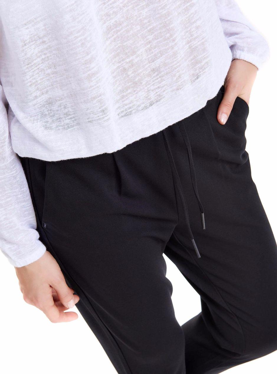 Calças Only. Modelo Poptrash. Cor preta. Solto. Perna ajustada. Cintura elástica com cordão. Bolsos laterais. Tecido elástico. A modelo usa tamanho S.