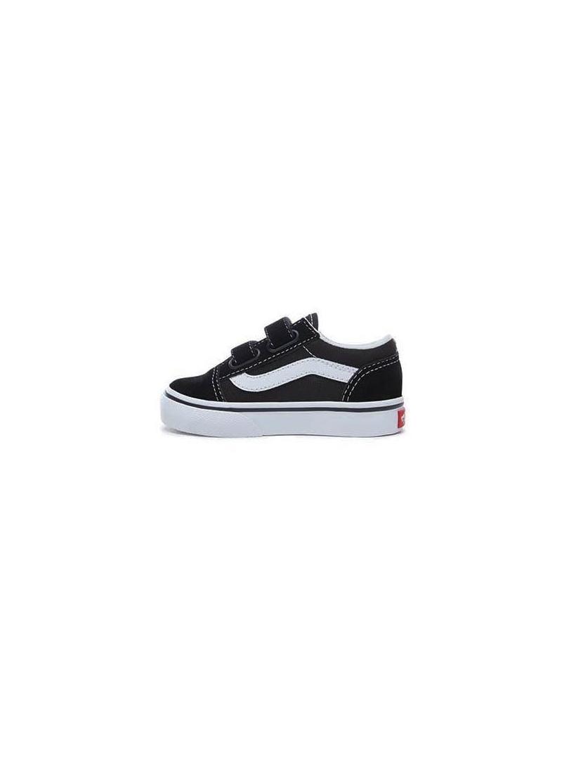 Sapatilhas Vans. Antigo modelo Skool Velcro. Cor preta. Couro superior. Fechamento de velcro. Colarinho acolchoado. Sola de waffle de borracha.