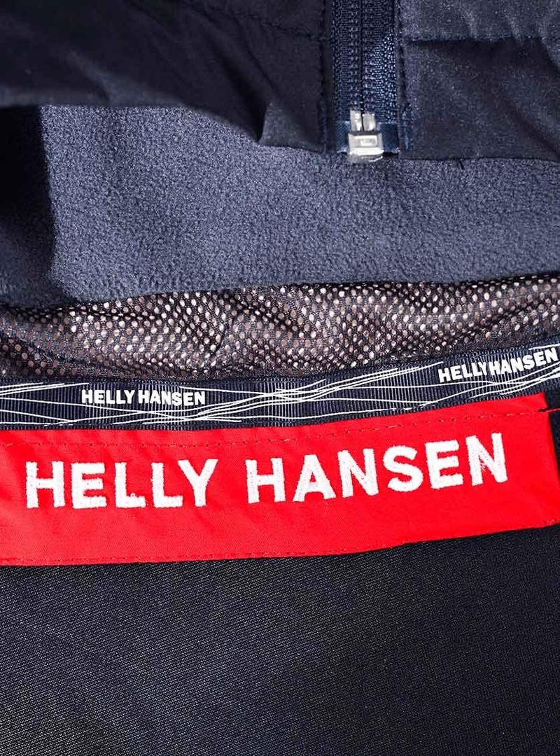 Casaca Helly Hansen. Tripulação modelo Midlayer. azul marinho. tecido impermeável e respirável. bolsos laterais com zíper. bolso no peito com fecho. Baixa ajustável. tecido bordado permite. O modelo é o tamanho M.
