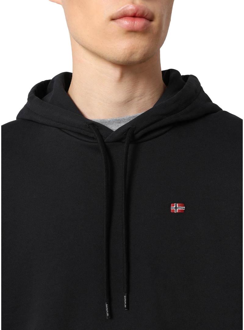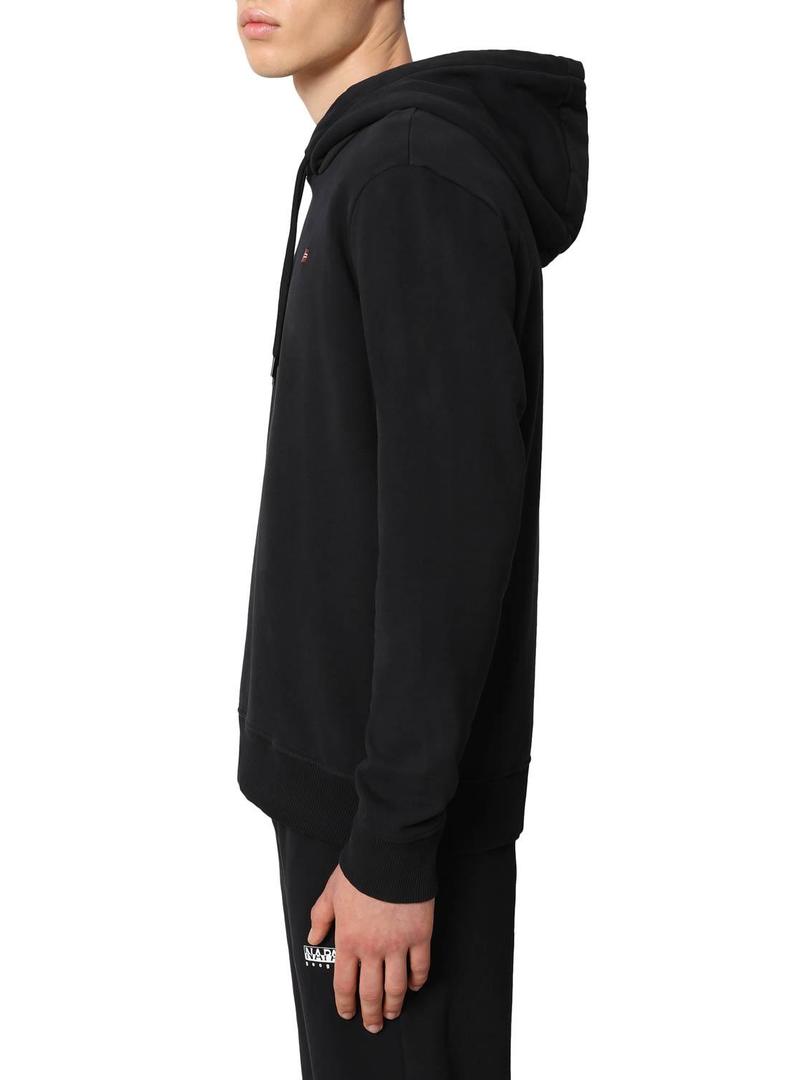 Sweat Napapijri. Modelo Balis. Cor preta. Capuz com atacadores. Elástico termina. Regular fit Estilo básico. Bandeira bordada no peito.