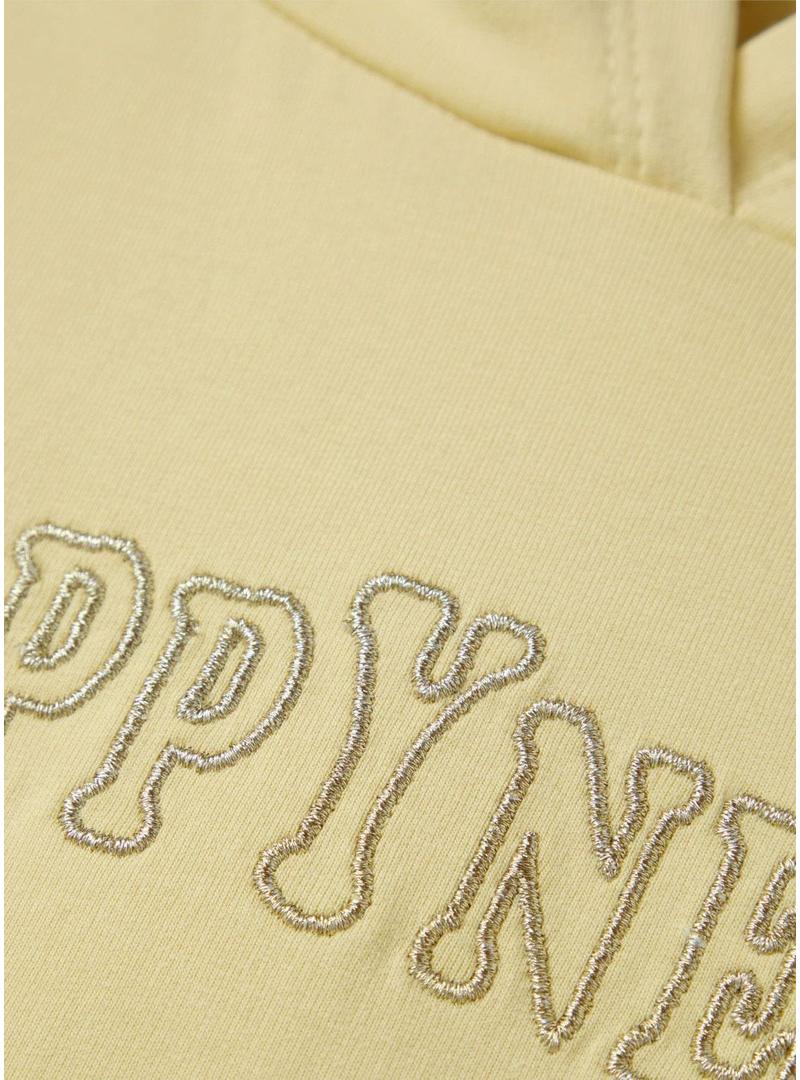 Sweat Name It. Modelo Borcha. Cor amarela. Gola com capuz. Borracha no baixo. Letras bordadas no peito. Extremidades caneladas.