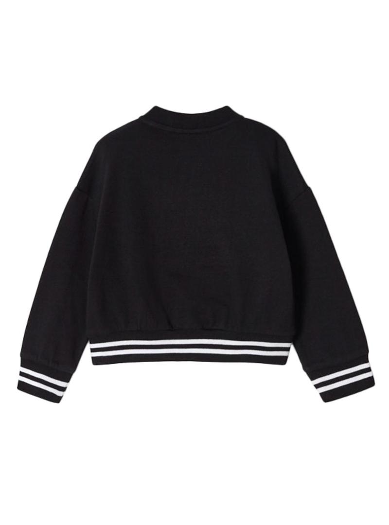 Sweat Mayoral. cor preta. Fecho com zíper frontal. Letras bordadas no peito. Bainha e punhos com borracha e guarnição branca. Bolsos laterais.