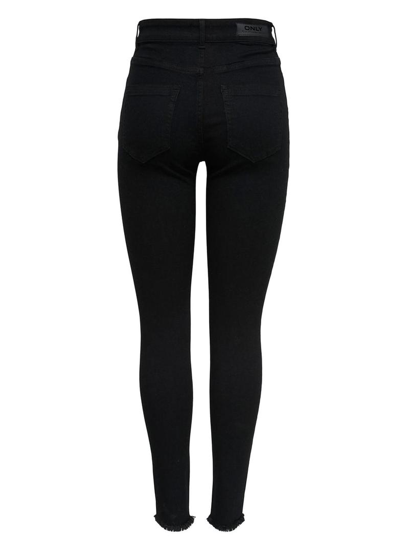Jeans Only. Modelo Blush. cor preta. Tecido denim elástico e apertado. Cinco bolsos. Parte inferior desfiada. Fechamento por botão e zíper.
