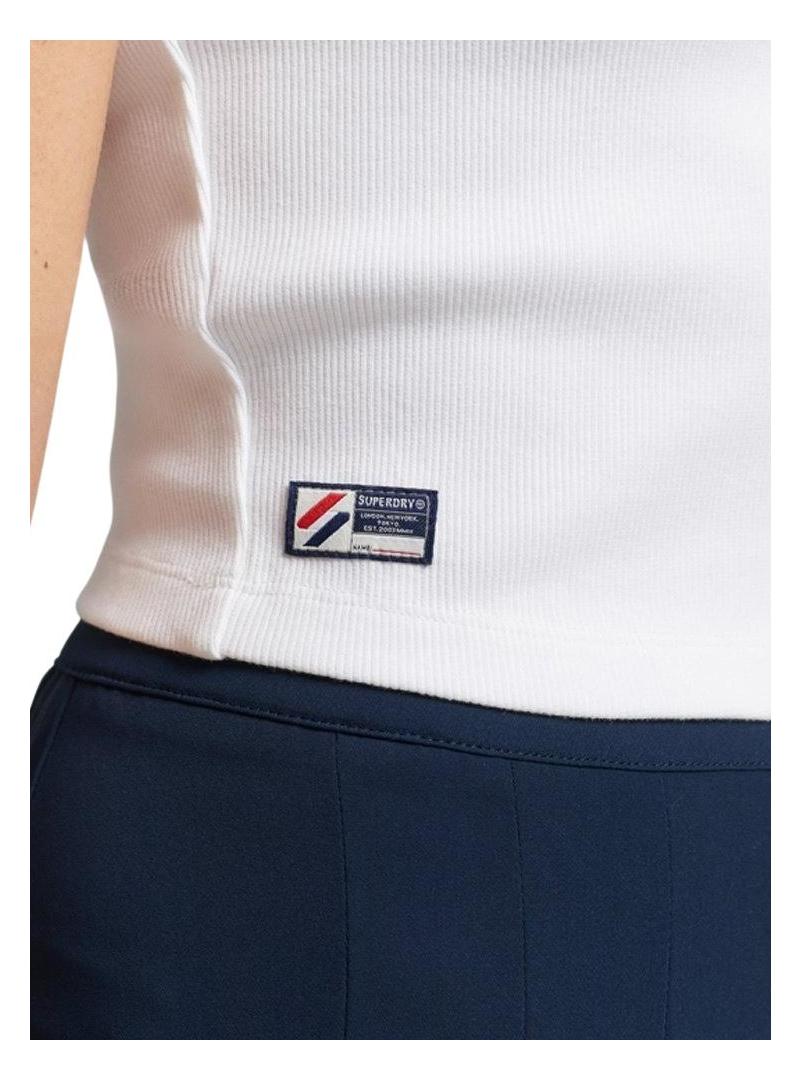T-Shirt Superdry. Modelo Code Essential. Cor branca. Alças finas. Logótipo bordado no peito. Etiqueta costurada na parte inferior. Malha canelada elástica.