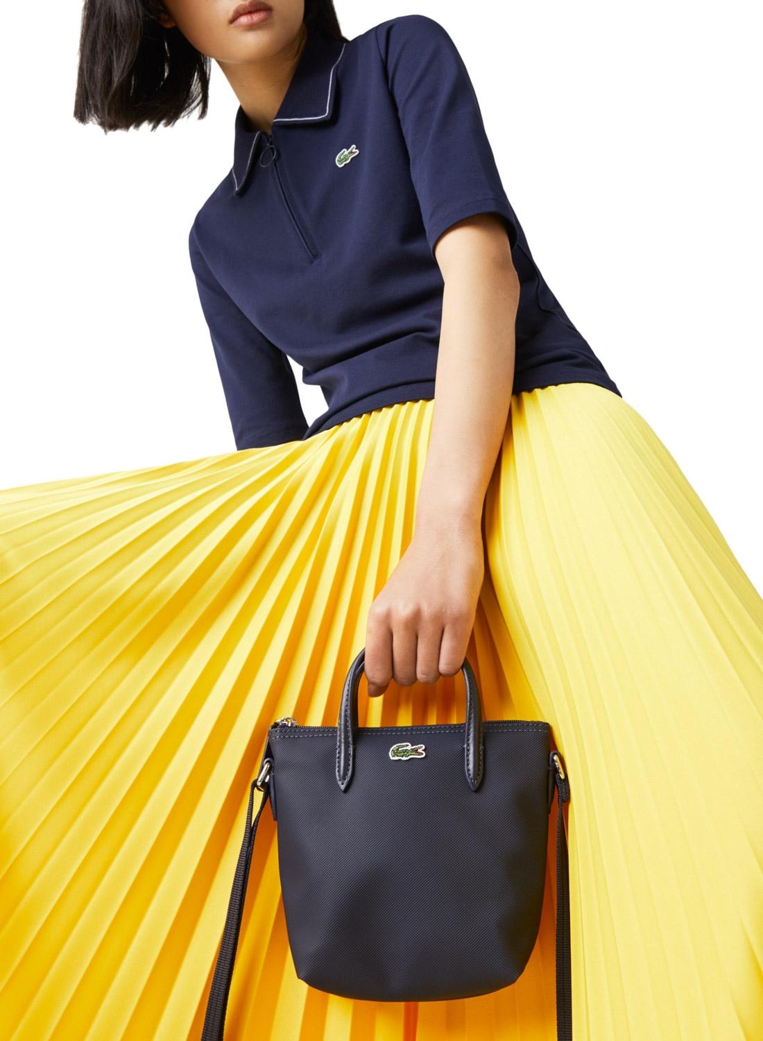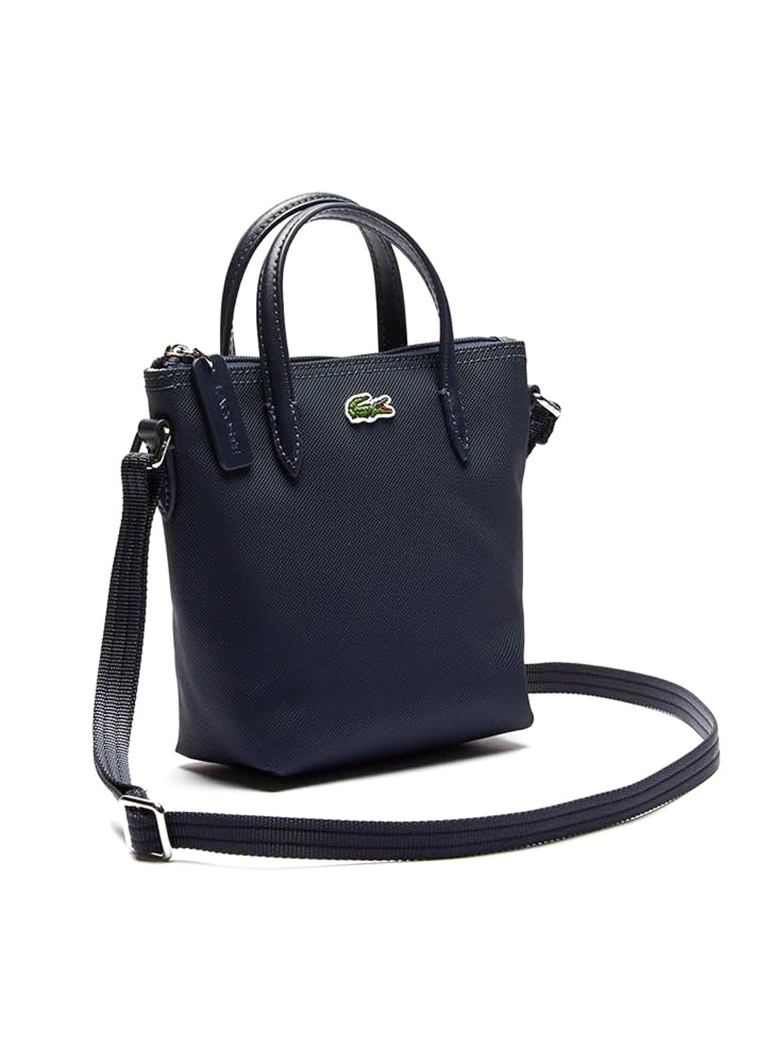 Bolsa Tote Lacoste. Confeccionada em lona piqué, com design aprimorado. Bolso interno com zíper. Posição dupla com alça de ombro ajustável. Crocodilo bordado. Dimensões: 15x18x7cm.