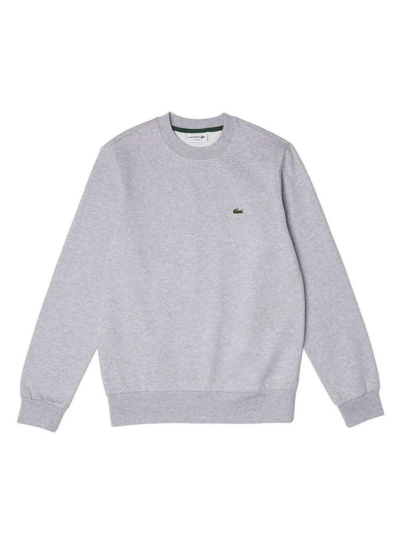 Sweat Lacoste. Modelo Basic. Cor cinzenta. Pescoço redondo. Regular fit Extremidades ranhuradas. Logótipo bordado no peito.