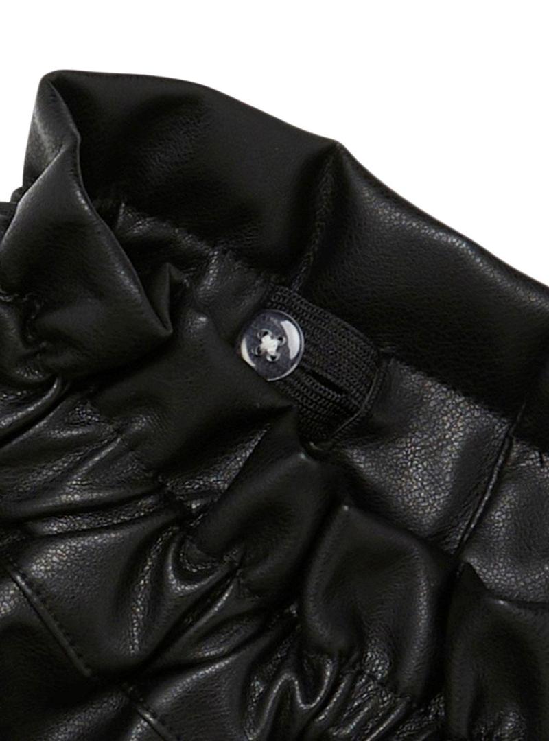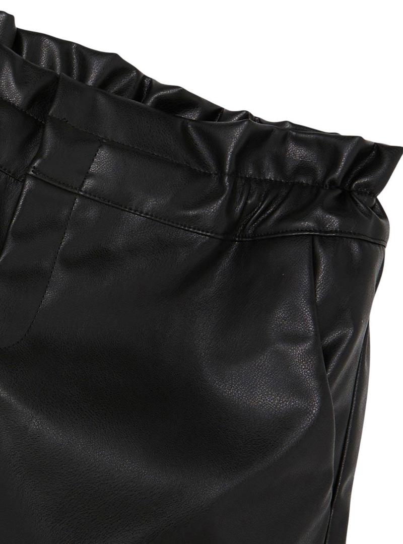 Short Name It. Tecido Couro Sintético. cor preta. Cintura reunida e borracha. high rise. Fecho com botões de pressão e braguilha com meio fecho. Cintura elástica e ajustável. Bolsos laterais.