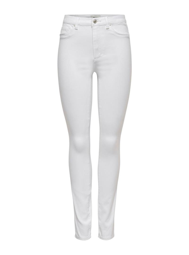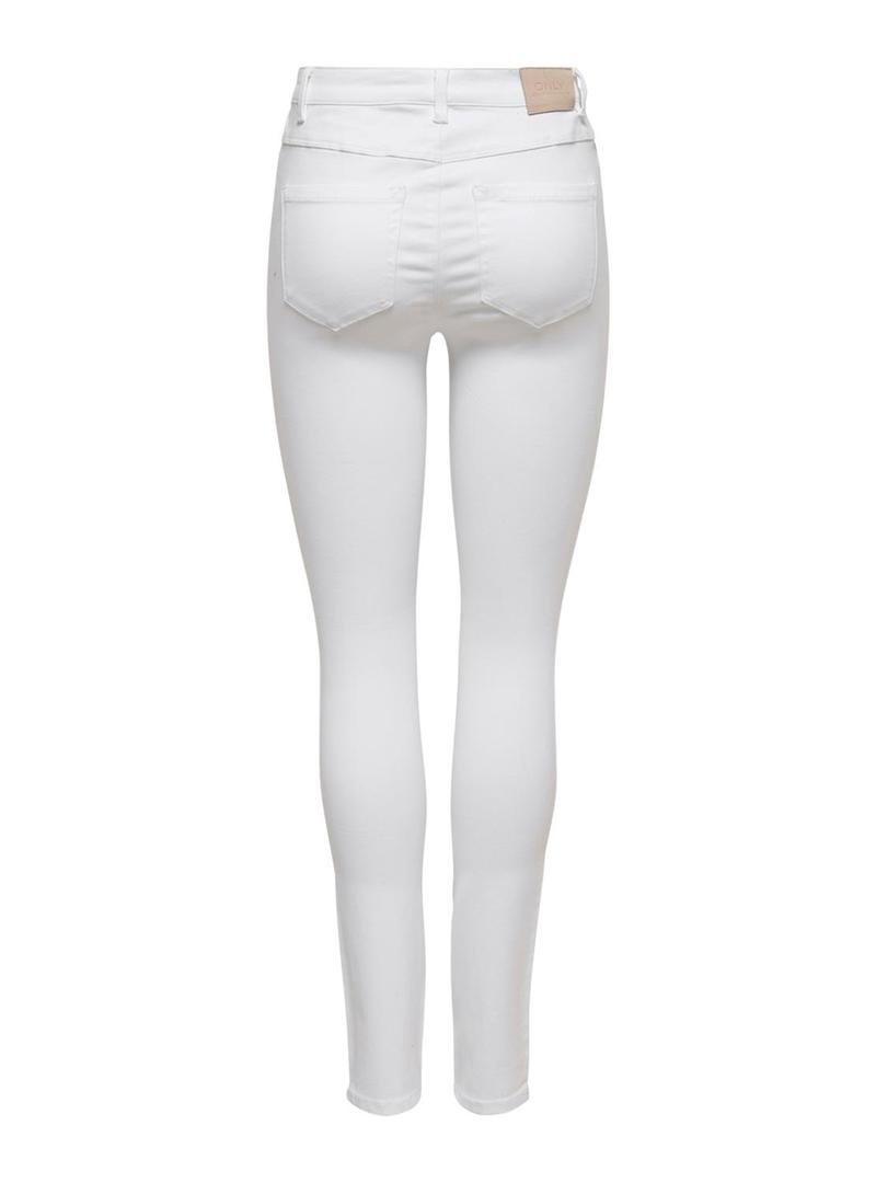 Jeans Only. Modelo Royal. Cor branca. high rise. Super skinny. Cinco bolsos. Fechamento por botão e zíper. Comprimento do tornozelo. Tecido elástico.