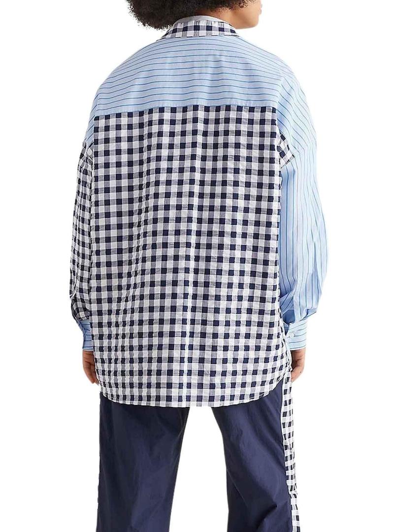 Camisa Tommy Jeans Faixa Gingahm Azul Mulher