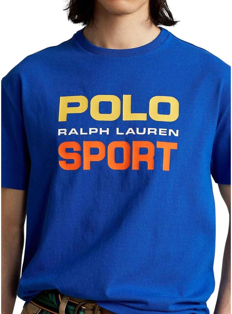 T-Shirt Polo Ralph Lauren. Sport. Cor azul. Polo Sport impressão a cores no peito. T-Shirt com manga curta e gola redonda. Acabamentos canelados.