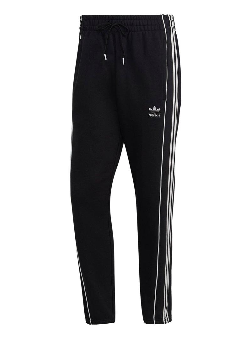 Calças Adidas. Modelo Rekive. Cor preta com faixas laterais brancas. Logo Trefoil na coxa. Cintura elástica com cordão ajustável. Cintura média Bolso traseiro com zíper. Bolsos laterais com zíper. Punhos elásticos.