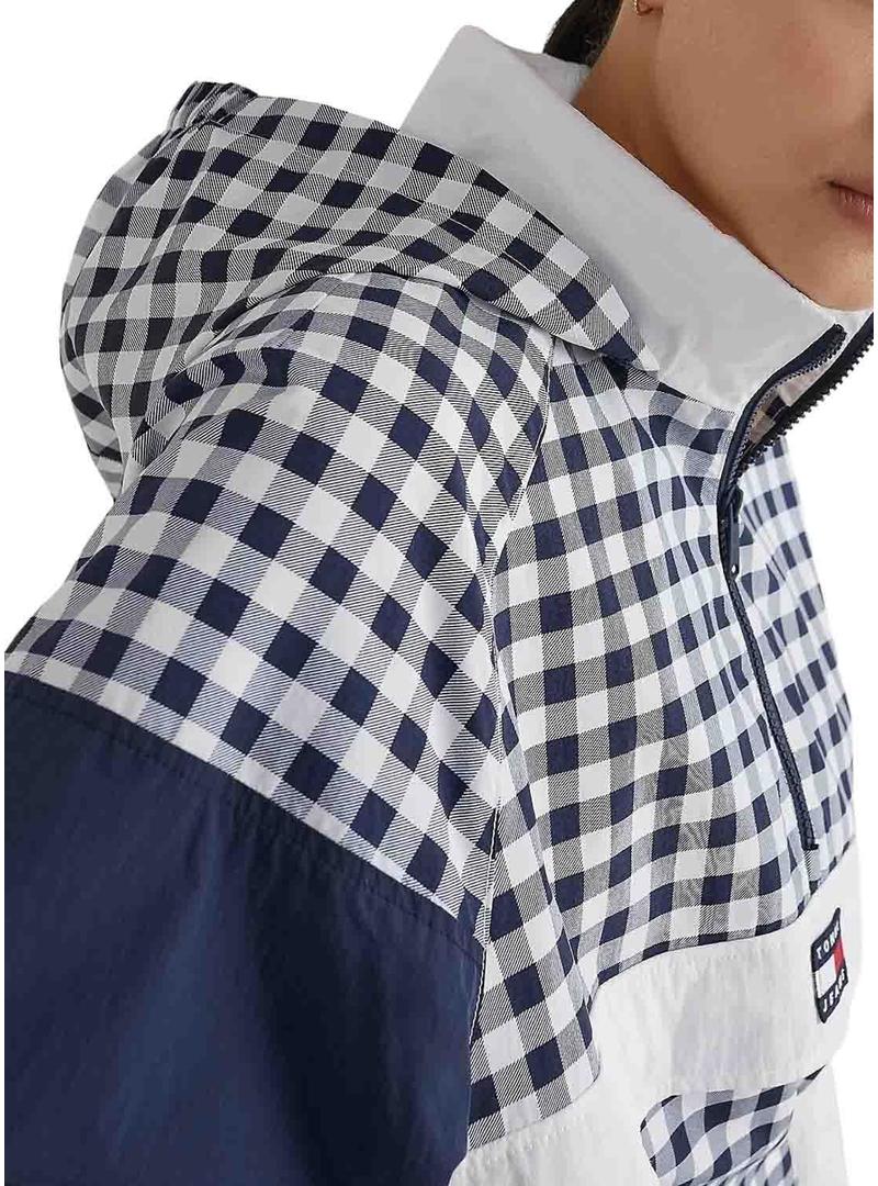 Casaca Tommy Jeans. Cor branca. Estampado de quadros marinhos. Com capuz. pescoço de Mao. Mangas raglan. Meio zíper. Modelagem soltinha e bandeira no peito.