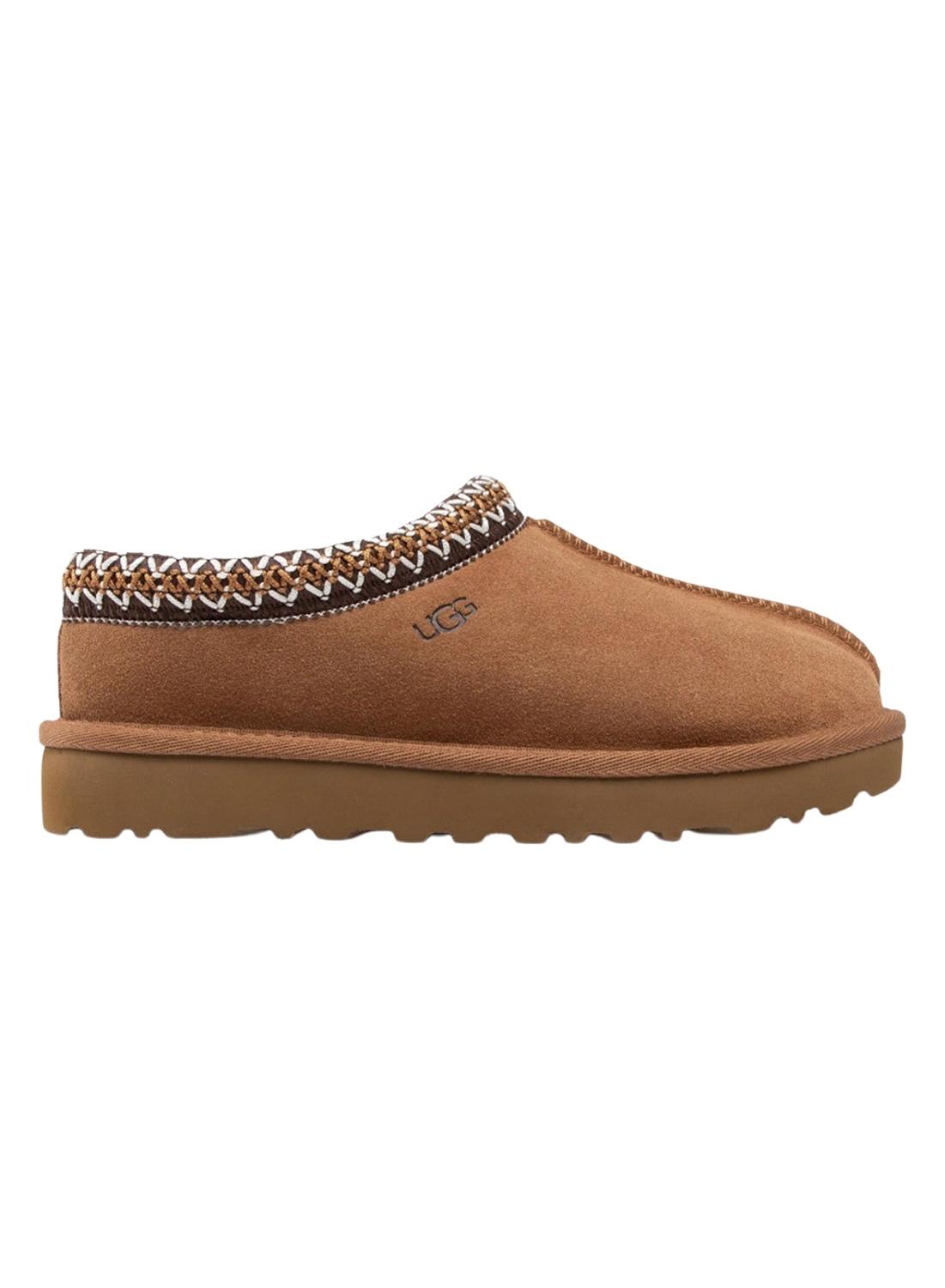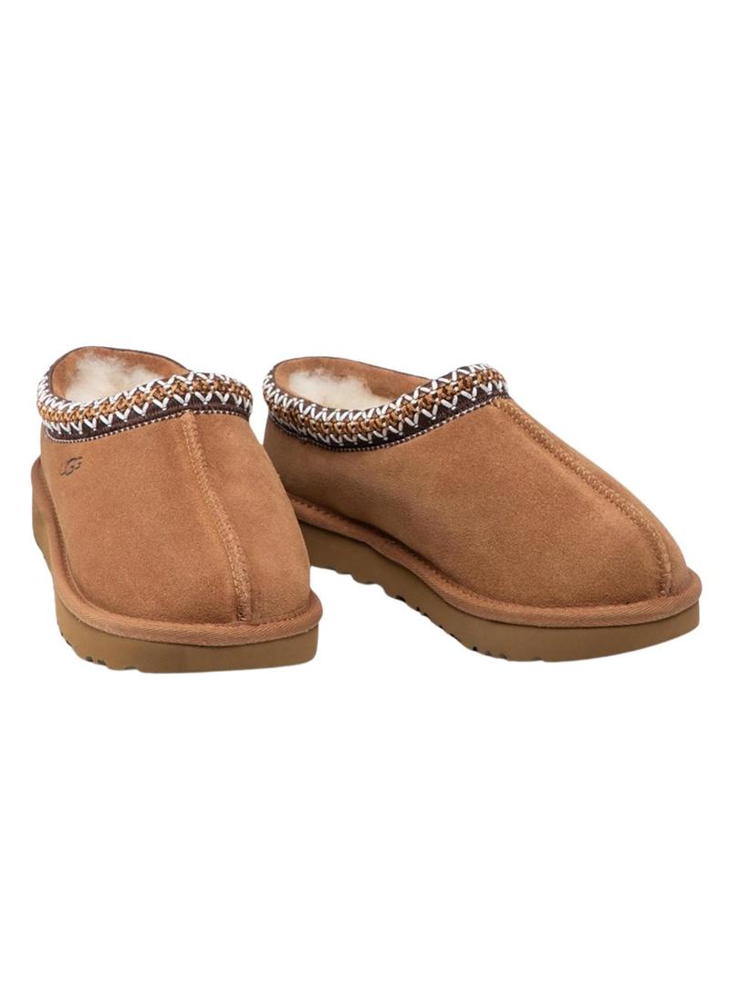 Mocassins UGG. Modelo Tasman. Cor camel. Forrado com lã natural macia. Feito com camurça. Ribete com motivo trançado. Palmilha de lã UGGpure. Solado Treadlite. para cabe tanto em ambientes internos quanto externos.