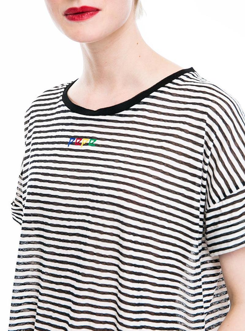 Camiseta Pepe Jeans Bani em listras de malha canelada preta para mulher.
