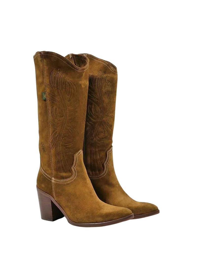 Bota Jaqueta Dakota Boots. Cor marrom. Tecido de couro dividido. Bordado. salto 7cm. Etiqueta lateral. Costura de contraste.