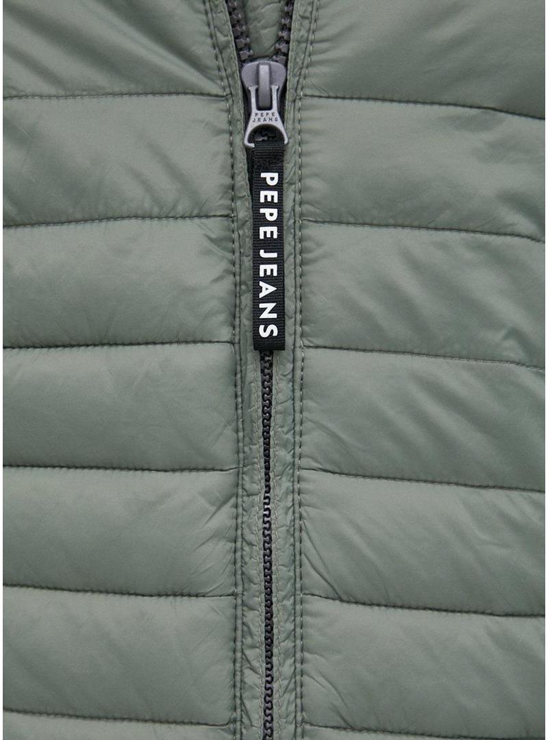 Casaca Pepe Jeans para homem. Fecho com zíper. Modelo Sólido de Connell. Tecido acolchoado. Cor verde.