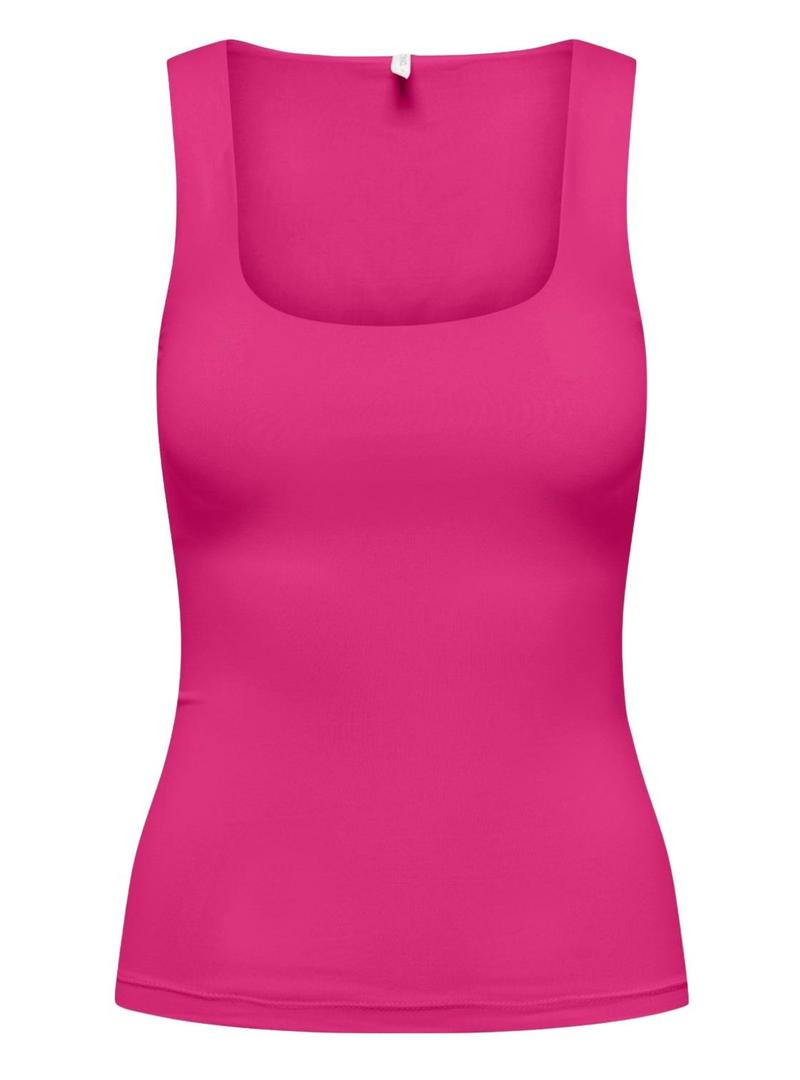 Top Only. T-Shirt rosa básico. Modelo lido. Sem mangas. Decote em U. Estilo informal.