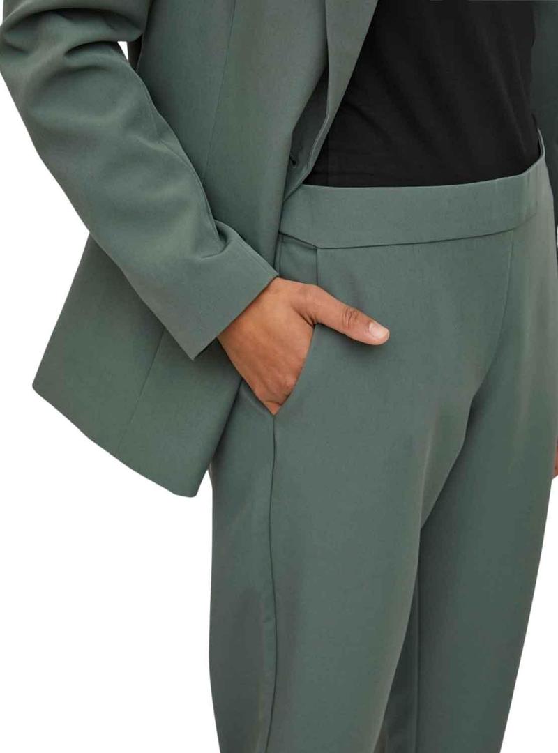 Calças Vila. Modelo Carrie. Cor verde. Zíper lateral oculto e fecho de gancho. Lado Bolsos. Comprimento 7/8. Bolsos decorativo na parte de trás.