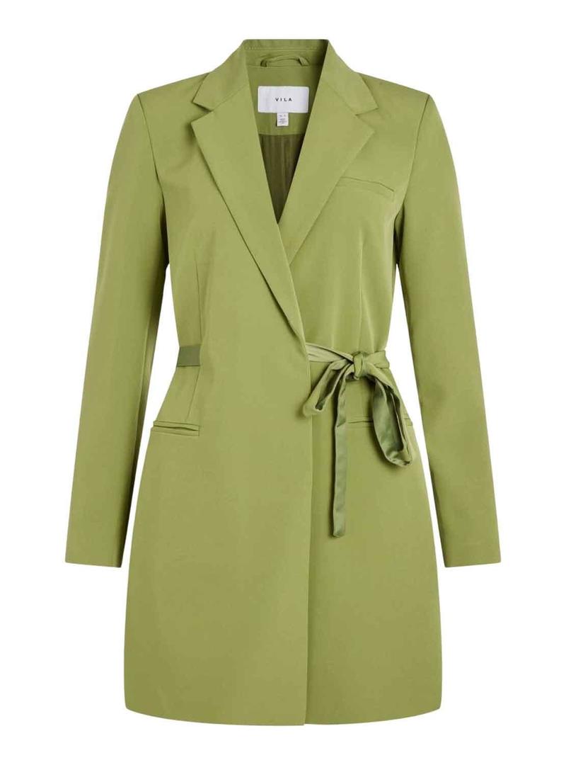 Vestido Vila. Modelo Vimya. Cor verde. Manga longo. Cinto destacável. Bolsos afiado. Corte reto.