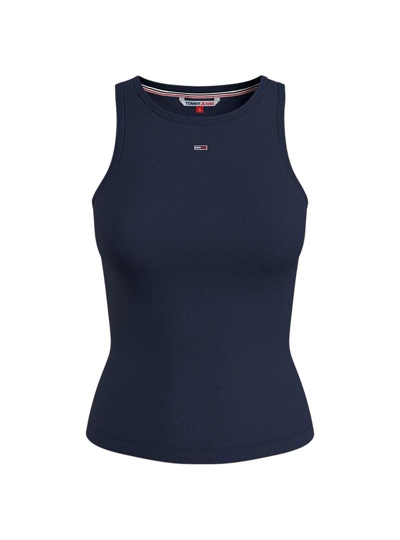 T-Shirt Tommy Jeans Rib Tank Azul Marinho para Mulher
