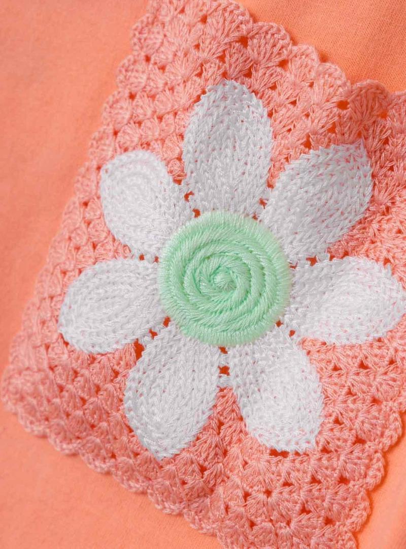 T-Shirt Name It. Modelo Fidda. Cor laranja. Pescoço redondo. Bolso com flor bordada. Corte solto.