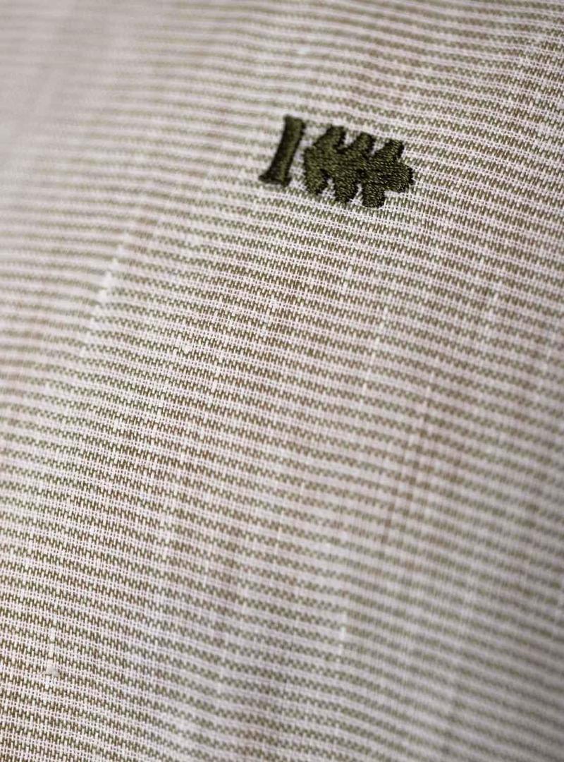 Camisa Klout. Modelo camisa. Cor verde. Tecido horizontal milListras. Logo bordado no peito. Gola mandarim com botões. Regular fit O modelo tem 1,83 e está usando o tamanho L.