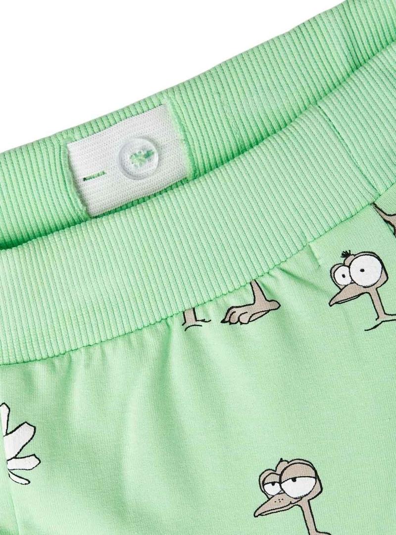 Bermudas Name It. Modelo Frilo. Cor verde. Cintura ajustável com cabo. 2 bolsos laterais. Detalhes estampados em toda a peça.