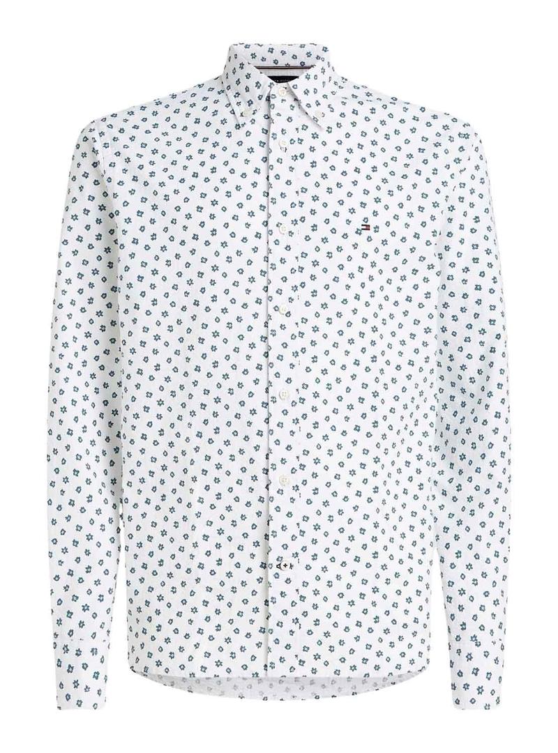 Camisa Tommy Jeans. Modelo Flower. Cor branco. Printed com mini flores em verde. Fecho de botão. Regular fit Logo bordado no peito. Gola da camisa.