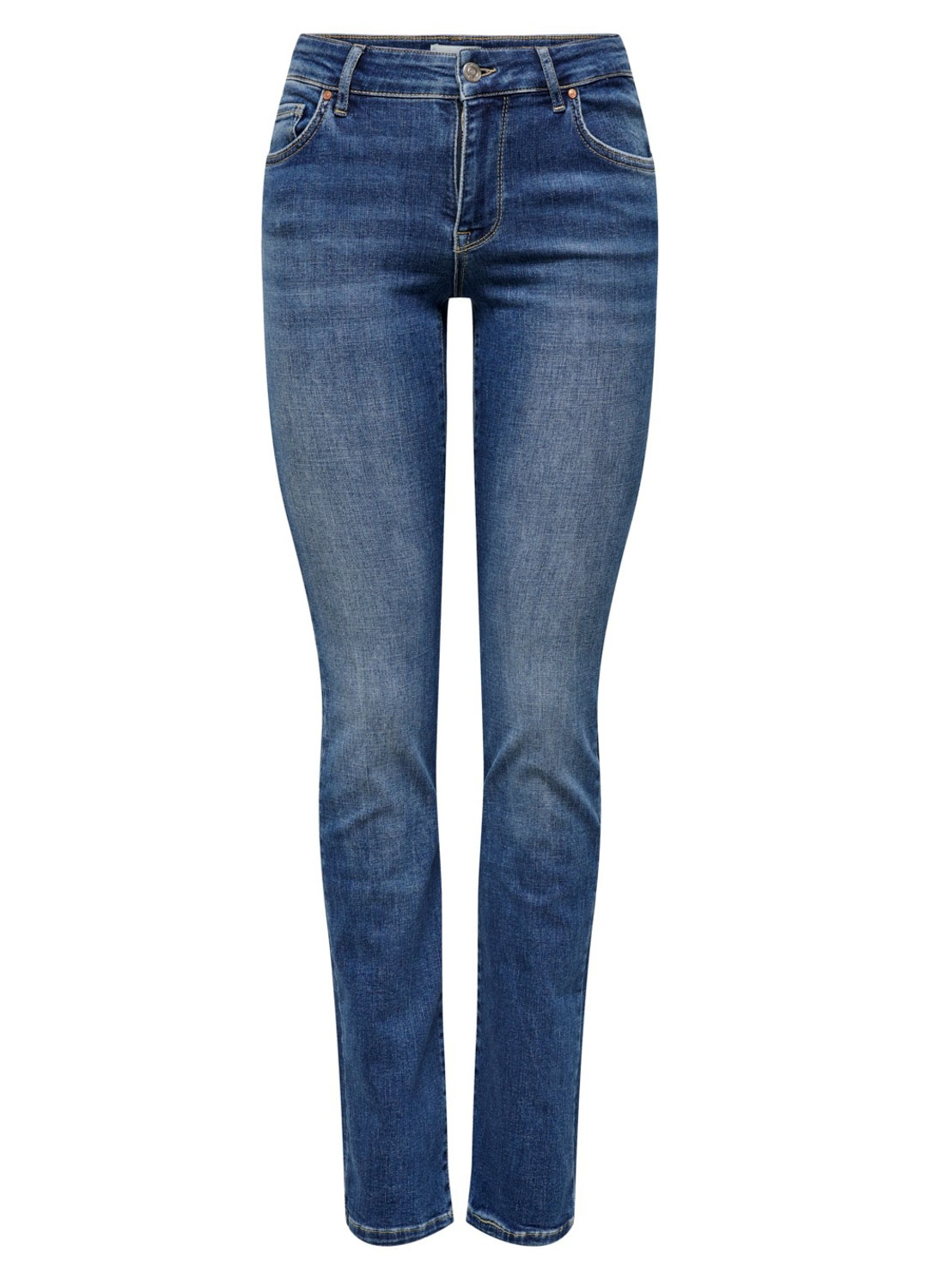 Calças Jeans Only. Modelo Alicia. Cor azul. 5 bolsos. Fecho frontal. Passadores de cinto na cintura