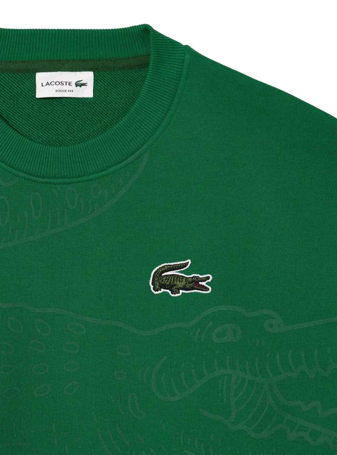 SweatLacoste. Modelo Jogger SH8248. Cor verde. Gola, punhos e bainha elásticos. Logo no peito. Crocodilo Printed dos anos 80. Tecido ecológico de algodão.