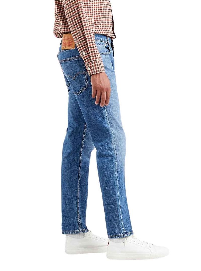 Jeans Calças Levis. Modelo 502 Taper Hibola. Cor azul. Corte padrão. mid rise. Fechamento por botão e zíper. 5 bolsos. Perna estreita. Tecido elástico.