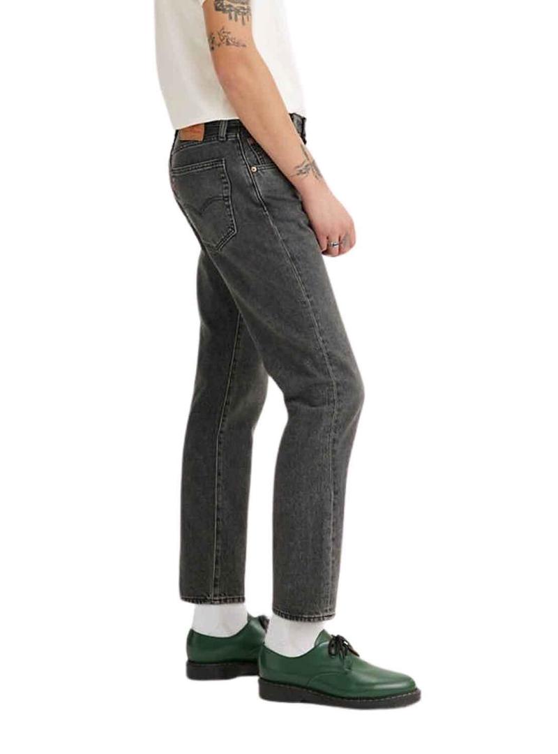 Jeans Calças Levis. Modelo 501. Cor cinza. Fecho de botão. mid rise. Perna ajustada. Fábrica de algodão. A modelo está usando tamanho 32.