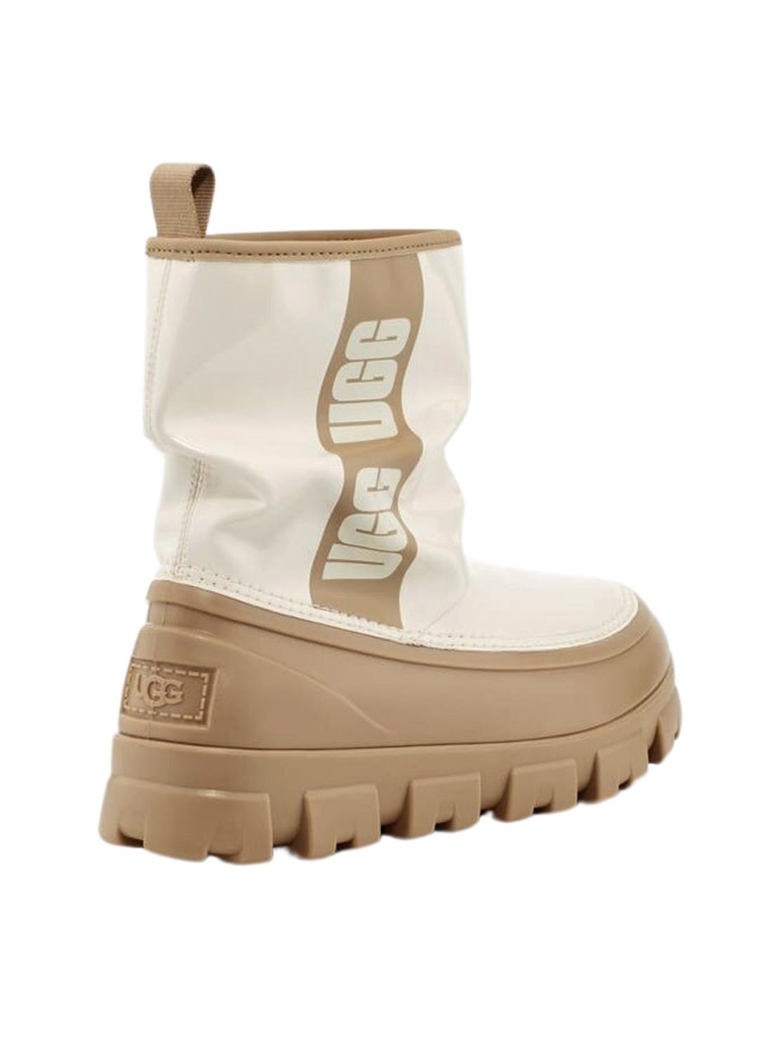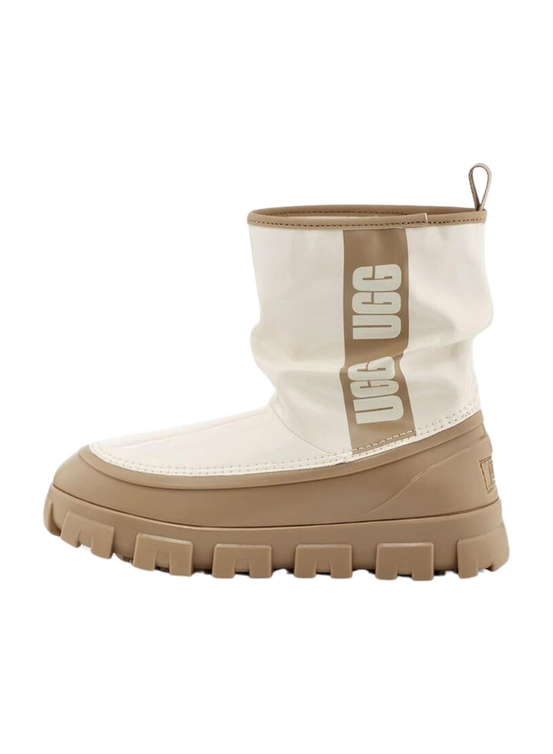 Botas UGG. Cor bege. Parte superior em couro sintético ousado. Logotipo de UGG impresso. Materiais repelentes à água. Parte superior sintética. Laço traseiro. Forro têxtil e forro UGGplush. Sola em TPE. Etiqueta tecida com logotipo UGG.
