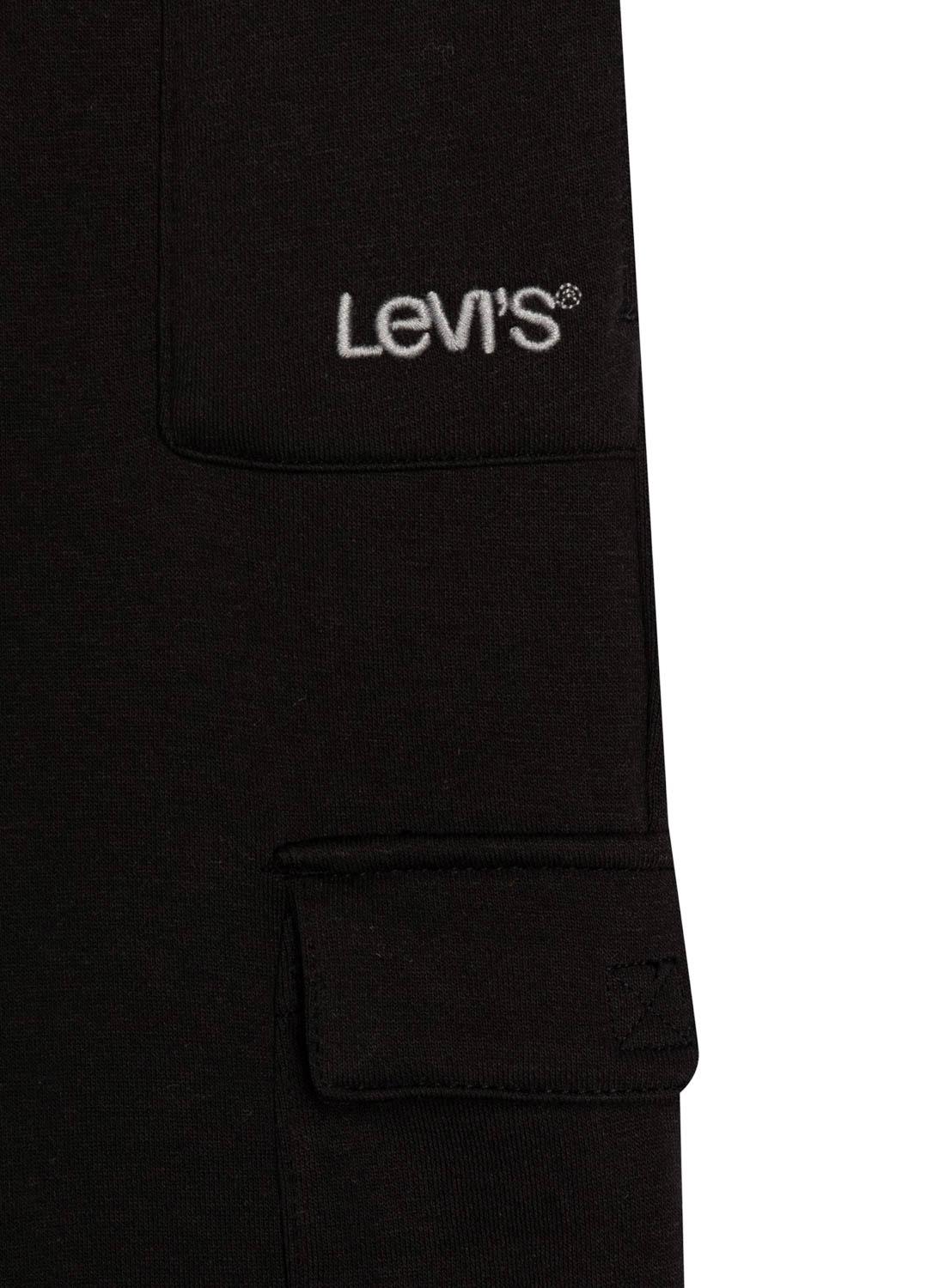 Calças Levis. Estilo Cargo. Modelo Jogger. Cor preto. Logo bordado na lateral. Vários bolsos. Pelúcia Calças.