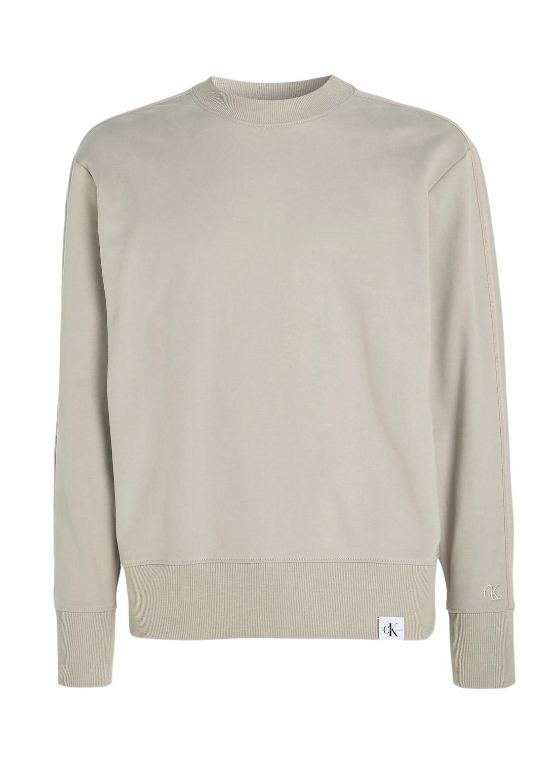 Sweat Calvin Klein Jeans Tecido Tab Crew Beige