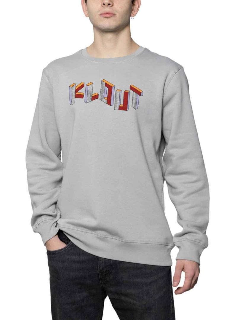 Sweat Klout. Modelo Art. Cor cinza. para mulher e homem. Gola redonda canelada. Corte regular. Estampado no peito. Acabamentos canelados. Toque suave. 280GSM. Selos: GOTS, OEKO TEX, PETA, WEAR FAIR LEADER.