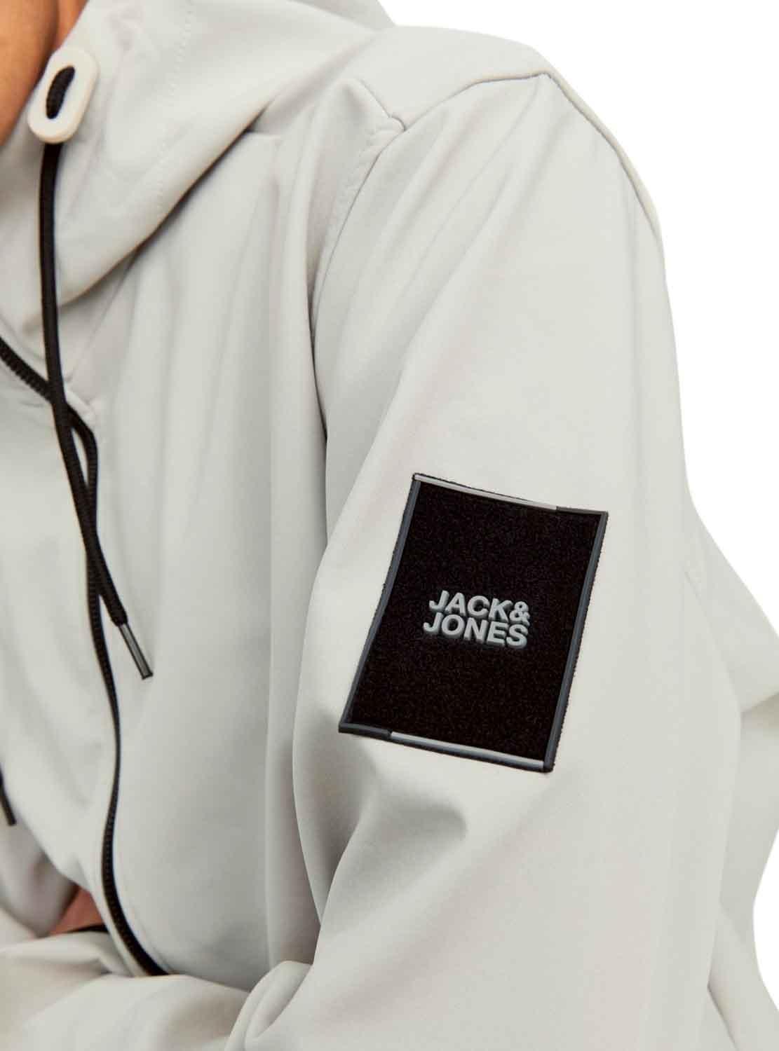 Casaca Jack & Jones. Modelo Classic. Cor cinza. Frente Fecho com zíper. Lado do Bolso com botão. Patch na manga. Bainha e punhos com elástico borracha. Gola com capuz ajustável.