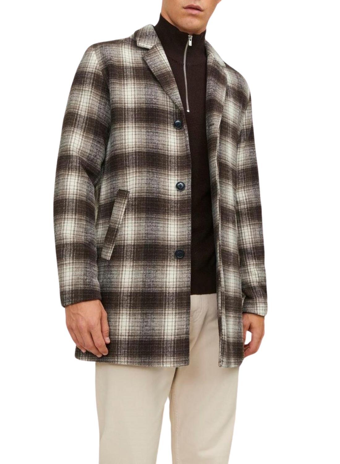 Casaco Jack and Jones. Modelo Zac. Estampa xadrez. Fecho com botões. Bolsos laterais. Gola de lapela.