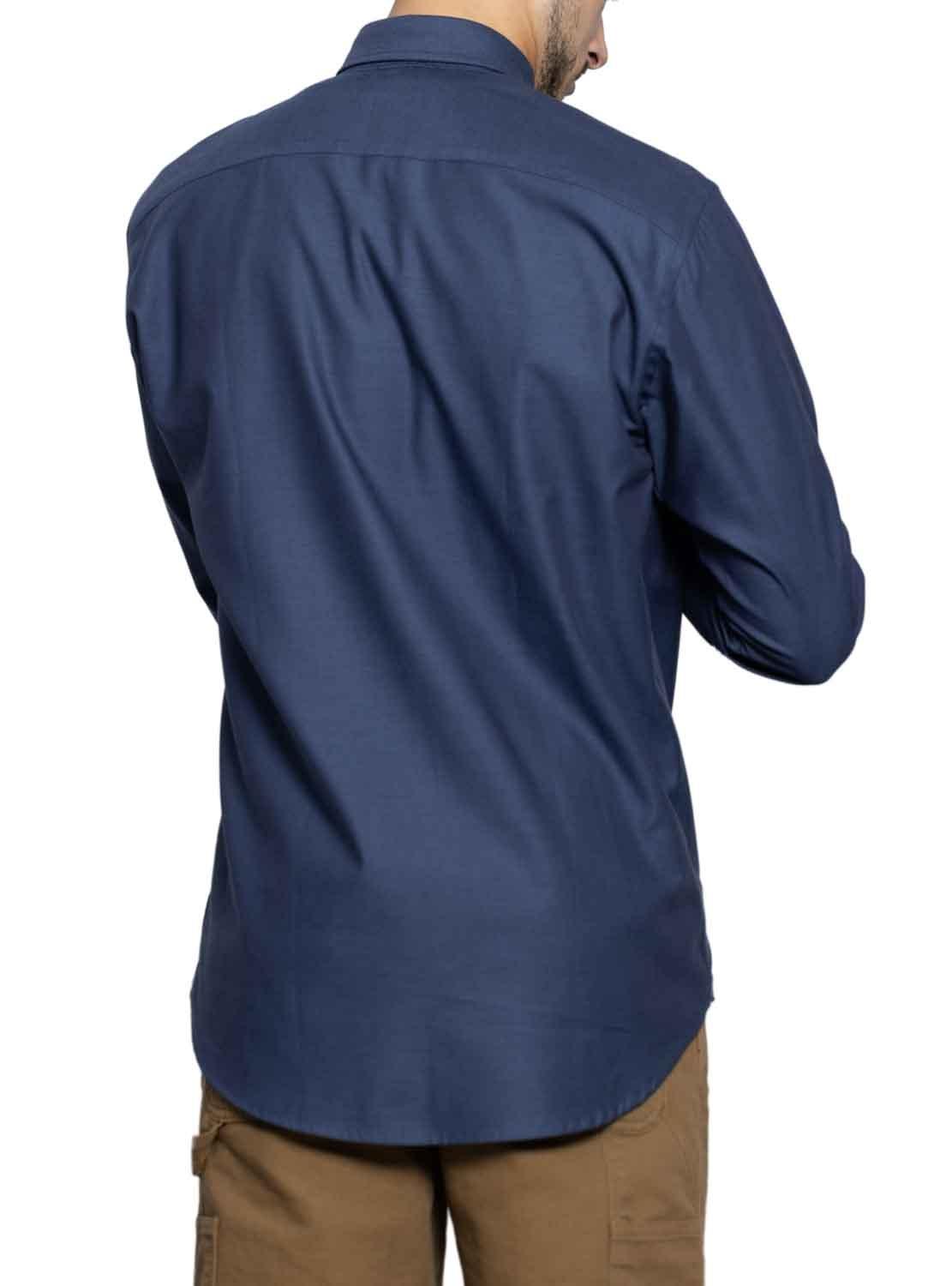 Camisa Klout. Modelo índigo. Cor azul. Logo bordado no peito. Regular fit Bainha arredondada. Fecho de botão. A modelo tem 1,85 e está usando tamanho L.