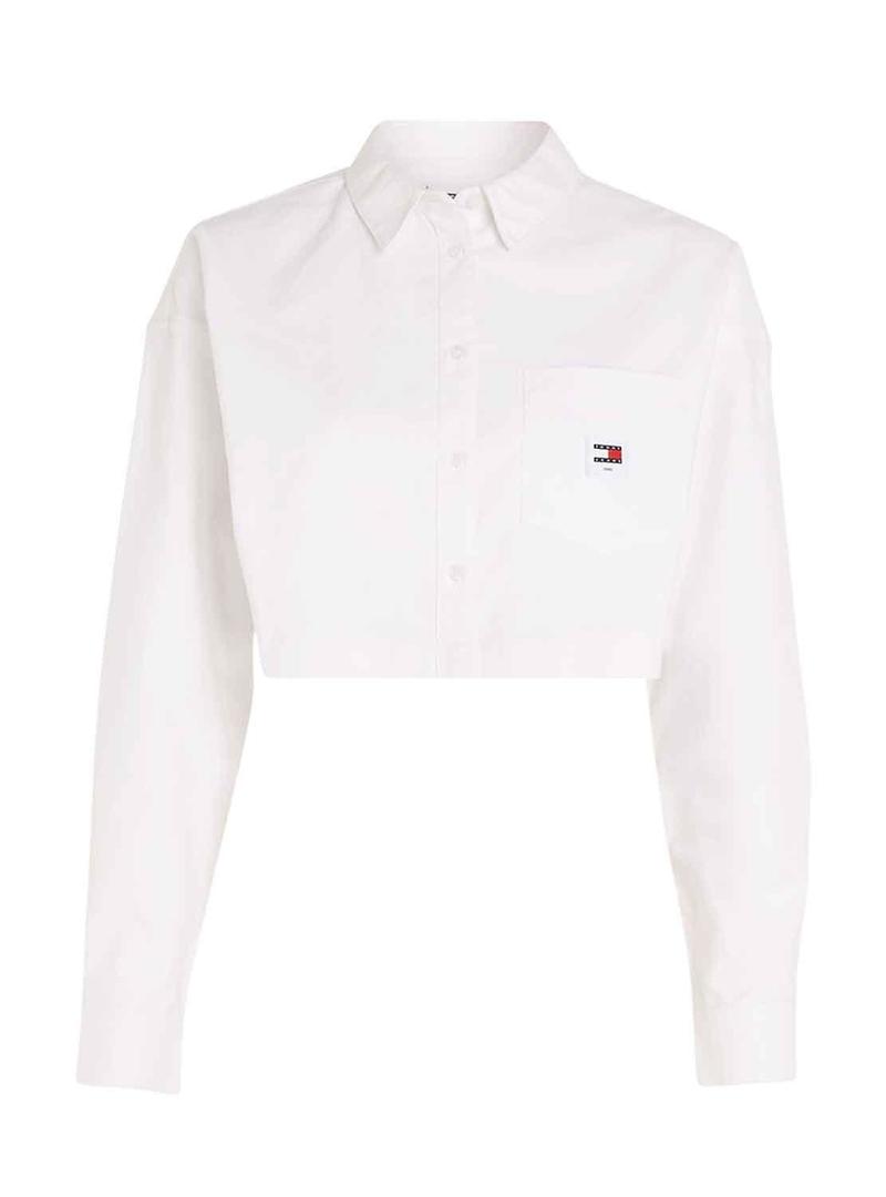 Camisa Tommy Jeans Crop Badge Branco para Mulher