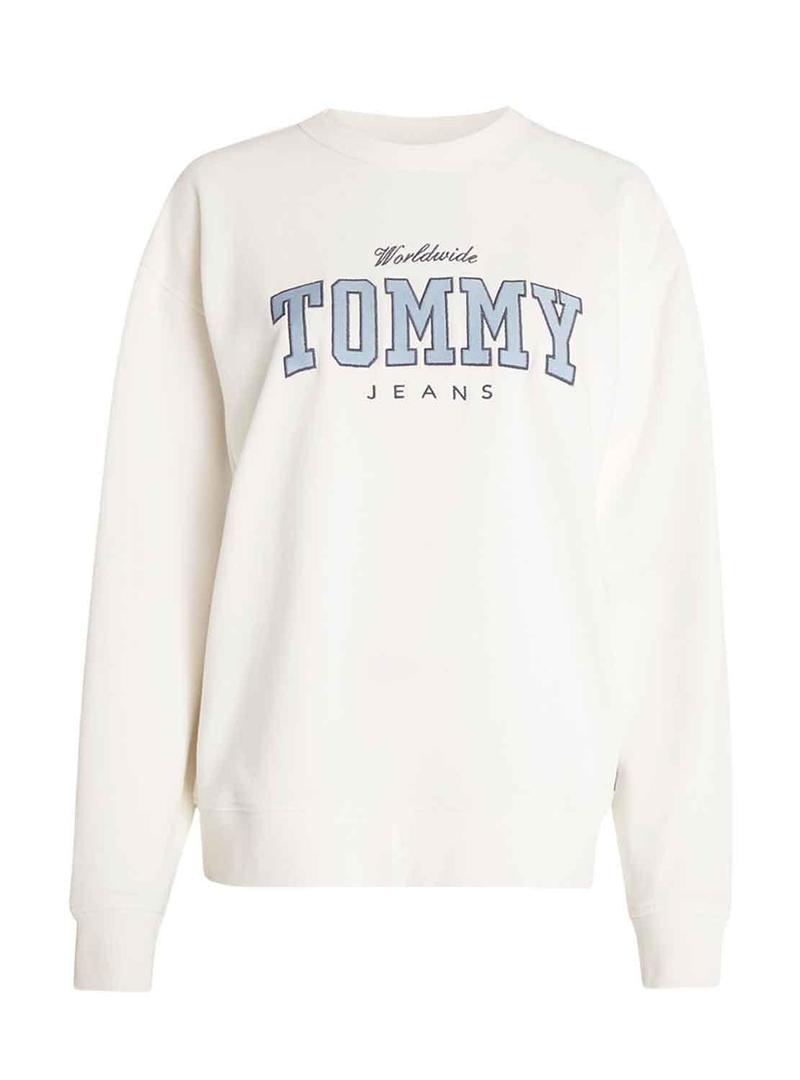 Sweat Tommy Jeans Varsity Luxe Branco Mulher