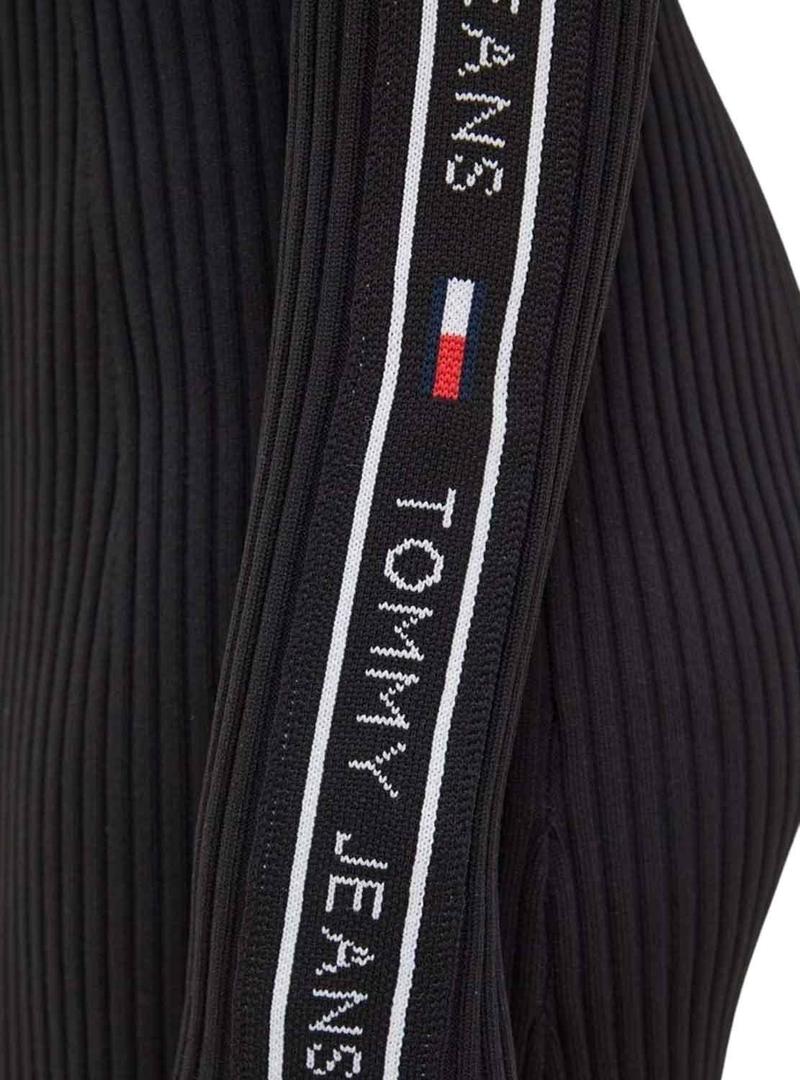 Vestido Tommy Jeans. Modelo Taping. Cor preto. Pescoço redondo. Manga longo. Ajuste fino. Abertura lateral. Tecido canelado. Comprimento midi.