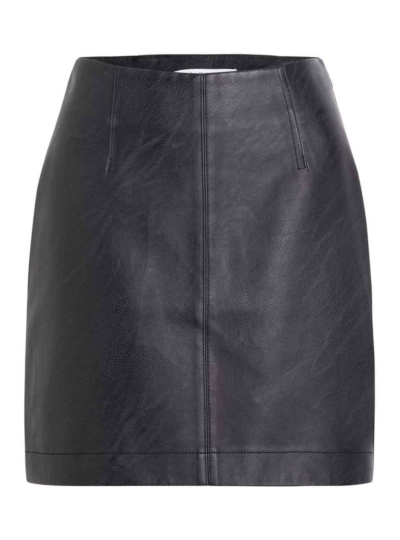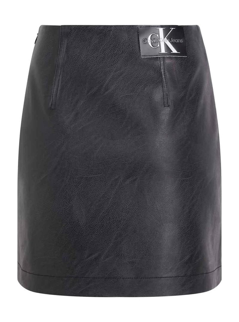 Couro sintético Calvin Klein Saia. Modelo Faux Leather. Cor preto. Etiqueta do logotipo na cintura.