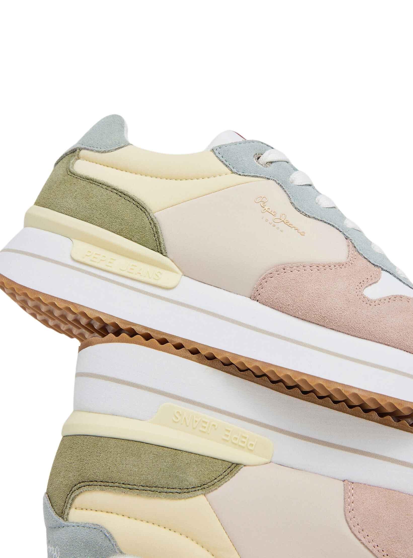 Sapatilhas Pepe Jeans. Modelo Rusper Jelly. Multicolor. camurça e painéis de lona. Fechamento com cadarço. Entressola com plataforma em EVA. Sola de borracha. Lado Logo. Coré pastel.