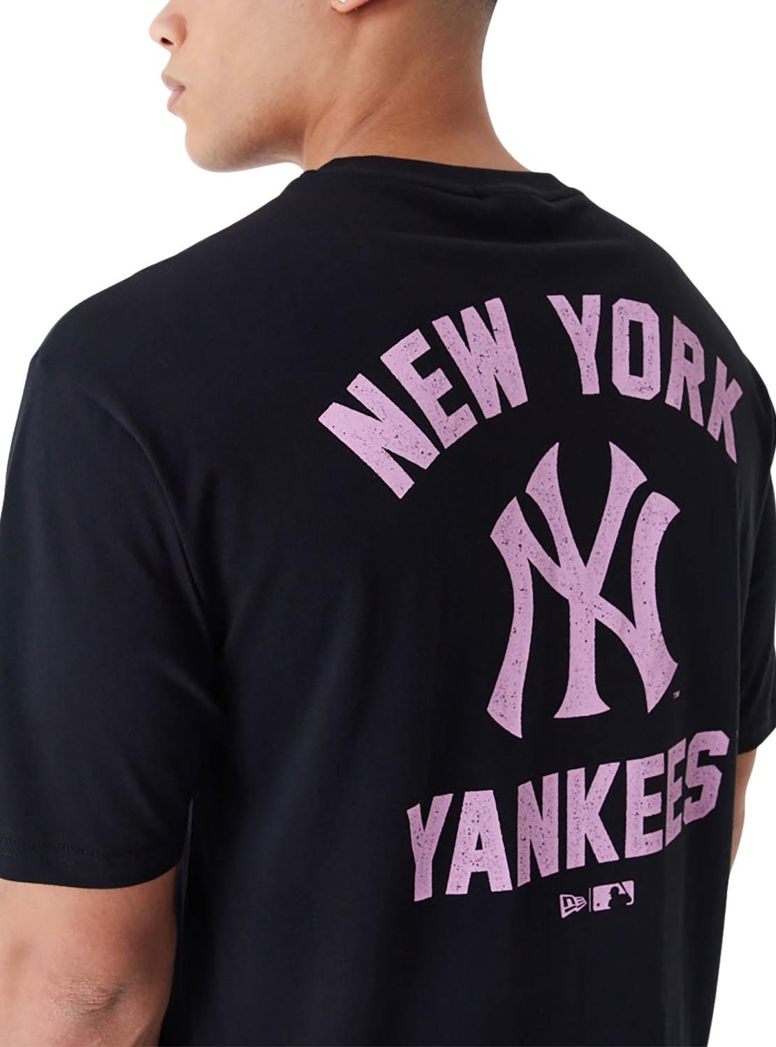 Camiseta New Era. Modelo New York Yankees MLB. Cor preta. Gola redonda. Manga curta. Detalhes estampados em roxo. Corte oversized. O modelo veste tamanho M. Estampado nas costas NEW YORK YANKEES.