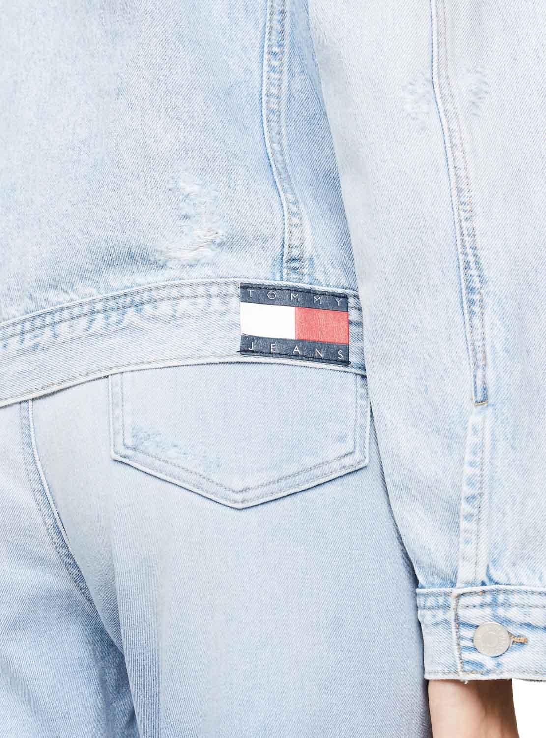 Jaqueta Tommy Jeans. Modelo Mom. Cor azul. Manga comprida. Fecho de botões. 4 bolsos. Detalhes distintivos da Tommy Jeans. Corte clássico.