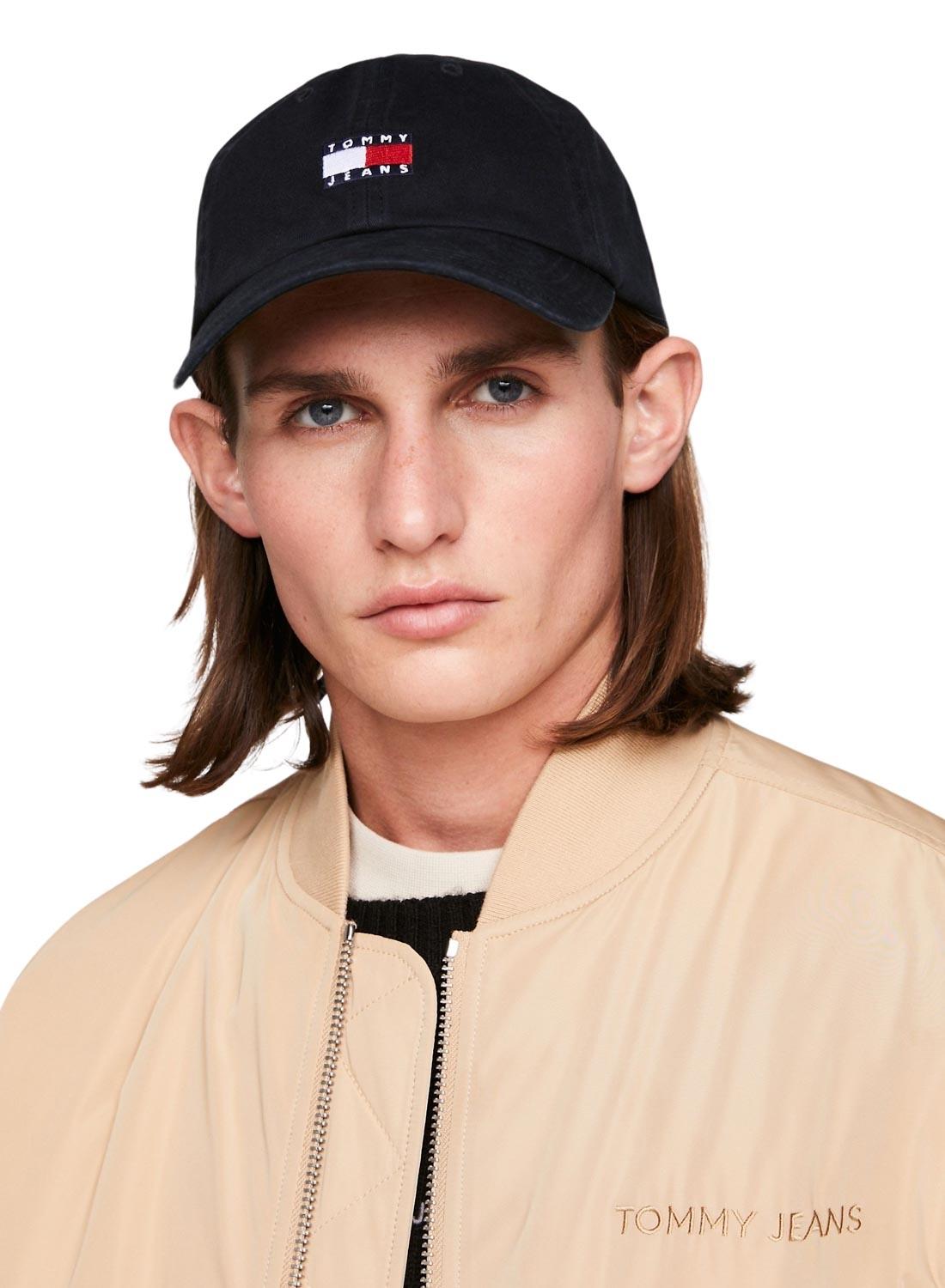 Boné Tommy Jeans. Cor preta. Com 6 painéis. Tecido de algodão orgânico. Botão na parte superior. Patch da Tommy na parte da frente. Costuras texturizadas na aba. Fivela ajustável de metal na parte de trás. Circunferência de 58 cm.