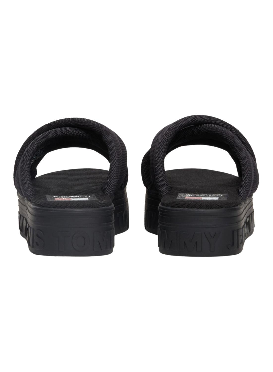 Sandálias Tommy Jeans. Modelo Letter. Cor preta. Alças acolchoadas cruzadas. Sola de borracha. Ponta aberta.