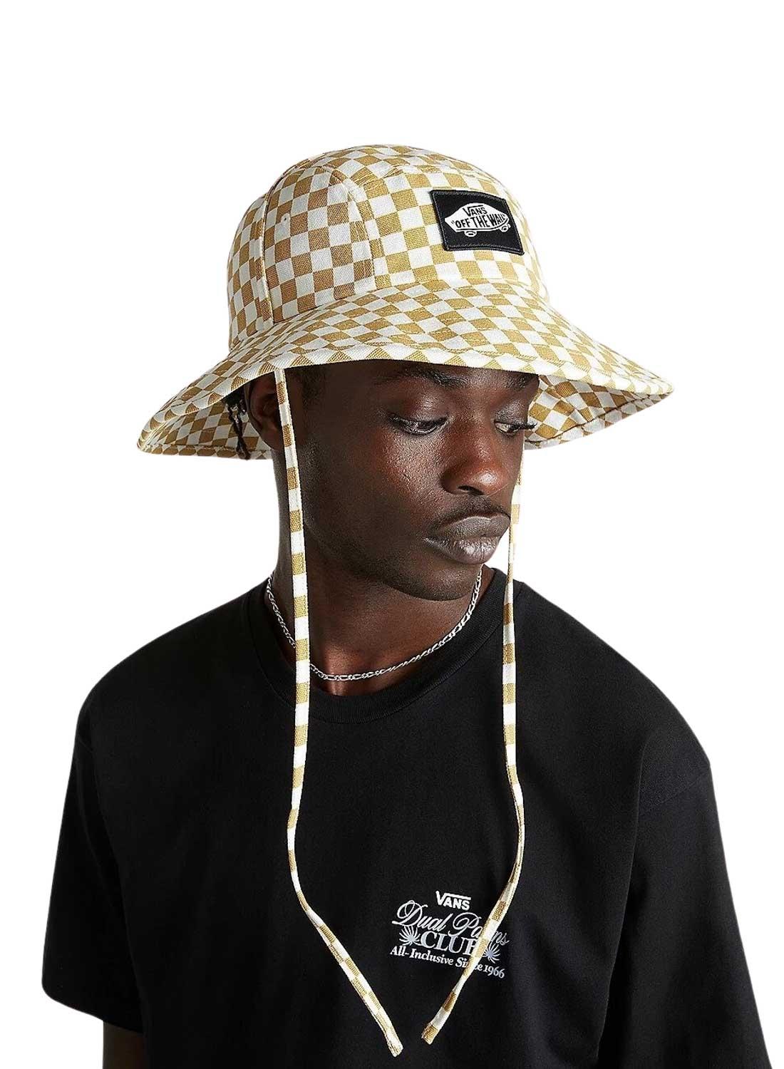Touca Vans. Bucket. Unissex. Estampado de xadrez. Aba larga. Com alça para o queixo. Etiqueta da marca tecida.
